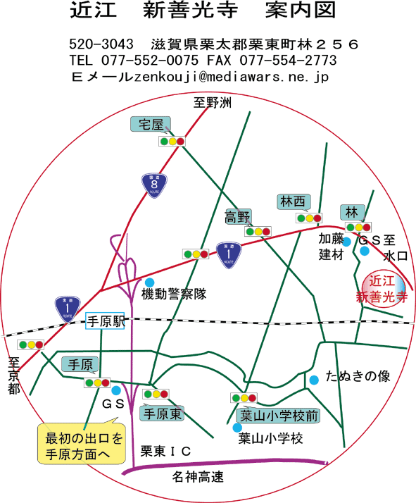 上のボタンを押すと新善光寺の有る栗東町のホームページへ